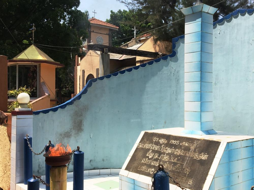 The bombing of Church of St Peter and St Paul, Navaly, Jaffna, by the SL Air Force, took place on the afternoon of July 9 1990. 125 people were killed and many more injured. They had all taken refuge in the church during a SLA offensive on the peninsula.