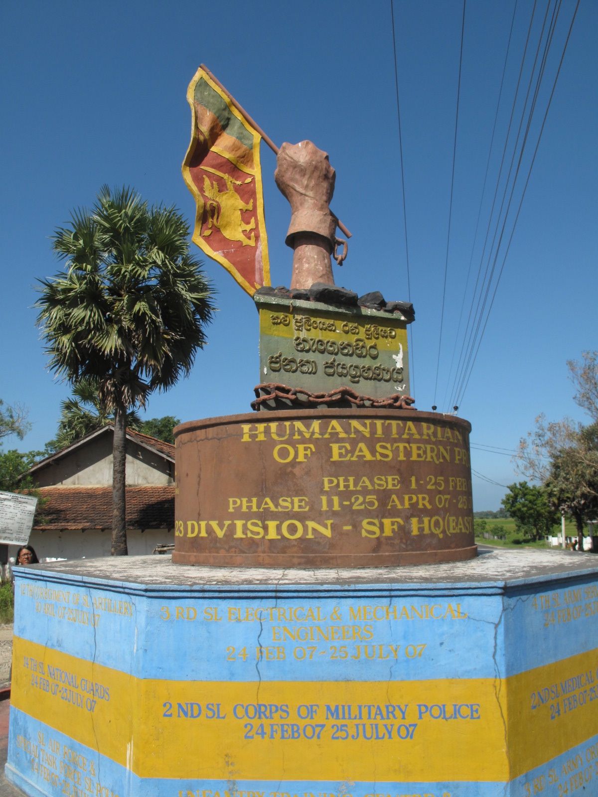 This monument was built by the army to celebrate the elimination of the LTTE from the Eastern Province, on July 11th 2007.