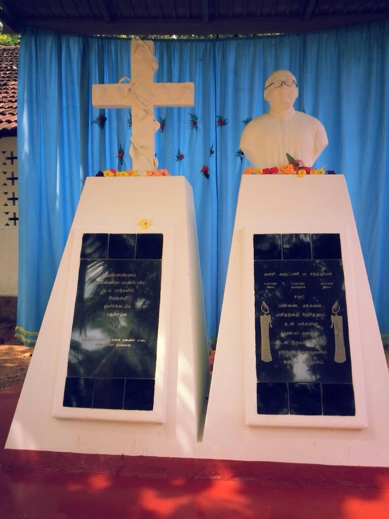Mariyampillai Sarathjeevan, popularly known as Father Sara, died on May 18 2009 while leading a group of Tamils to the SLA side. SLA claimed he died of a heart attack but unconfirmed reports claim he was severely assaulted by the SLA. The memorial was erected in his former parish, St Fatima Church, Uruthirapuram, Kilinochchi on May 18 2010.