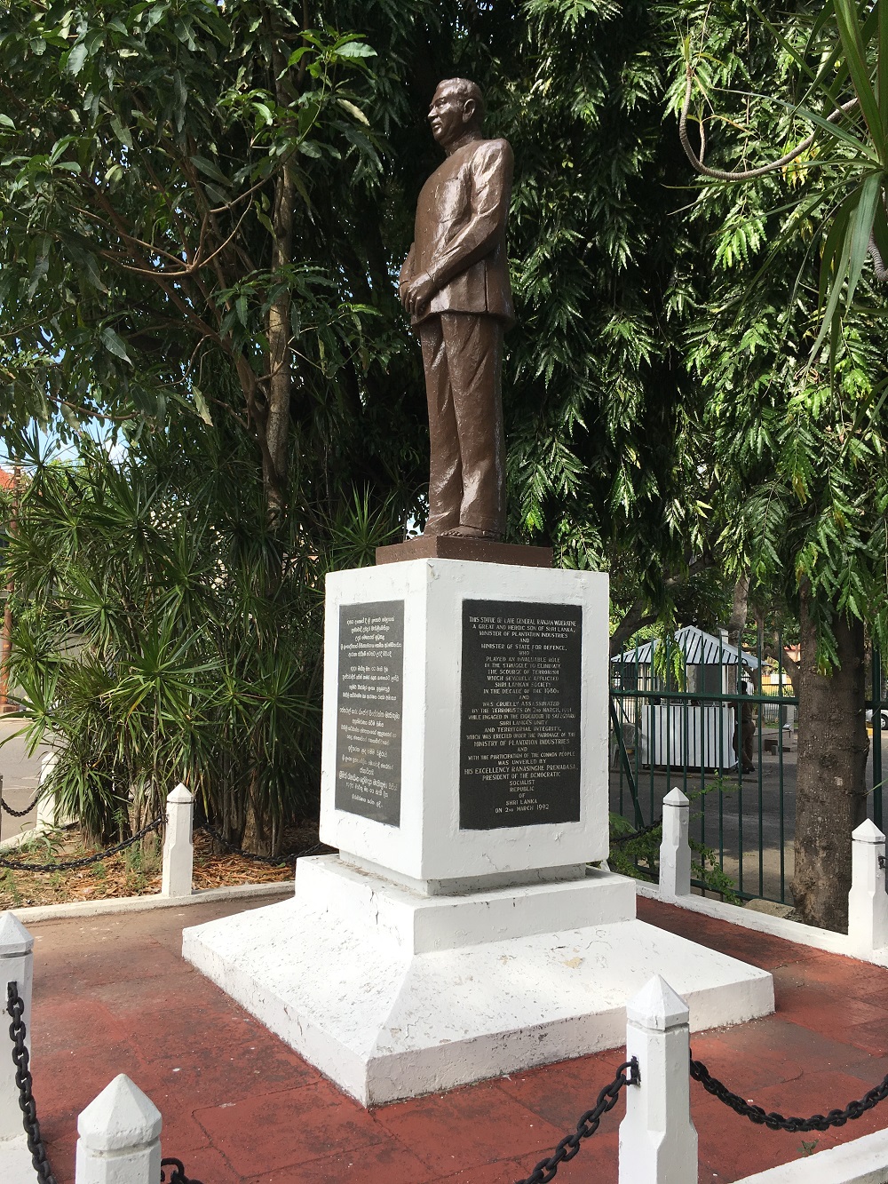 Deputy Defence Minister Ranjan Wijeratne was killed in a bomb blast engineered by the LTTE, on Havelock Road, Colombo, on March 2nd 1991; 18 others were also killed with him and 80 wounded. His statue marks the spot where he was killed.