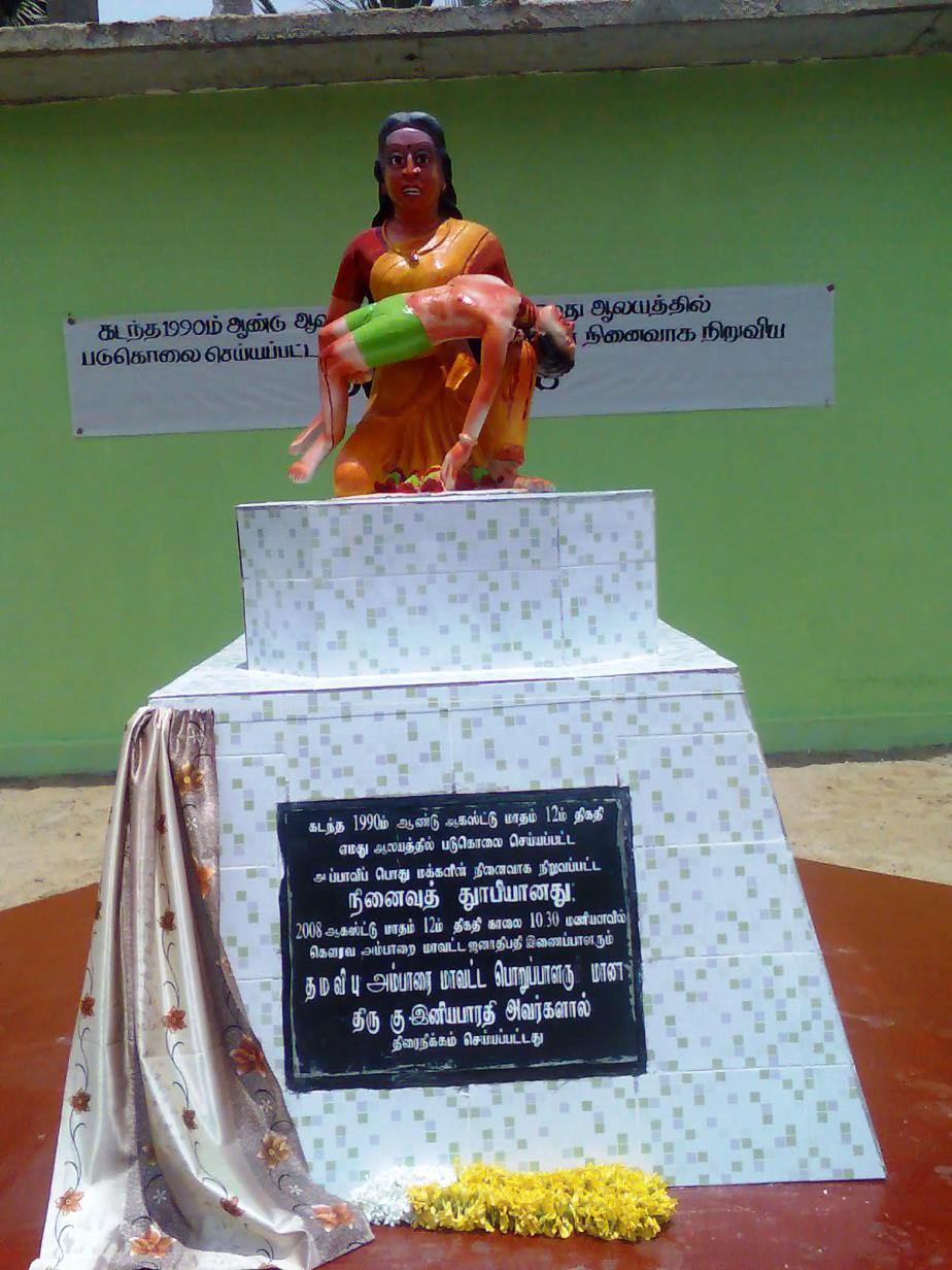 On August 12th 1990, Muslim Homeguards from the village of Sammanthurai, attacked the Tamil village of Veeramunai, killing 200 men, women and children. The people of Veeramunai built a memorial to commemorate this event, soon afterwards.